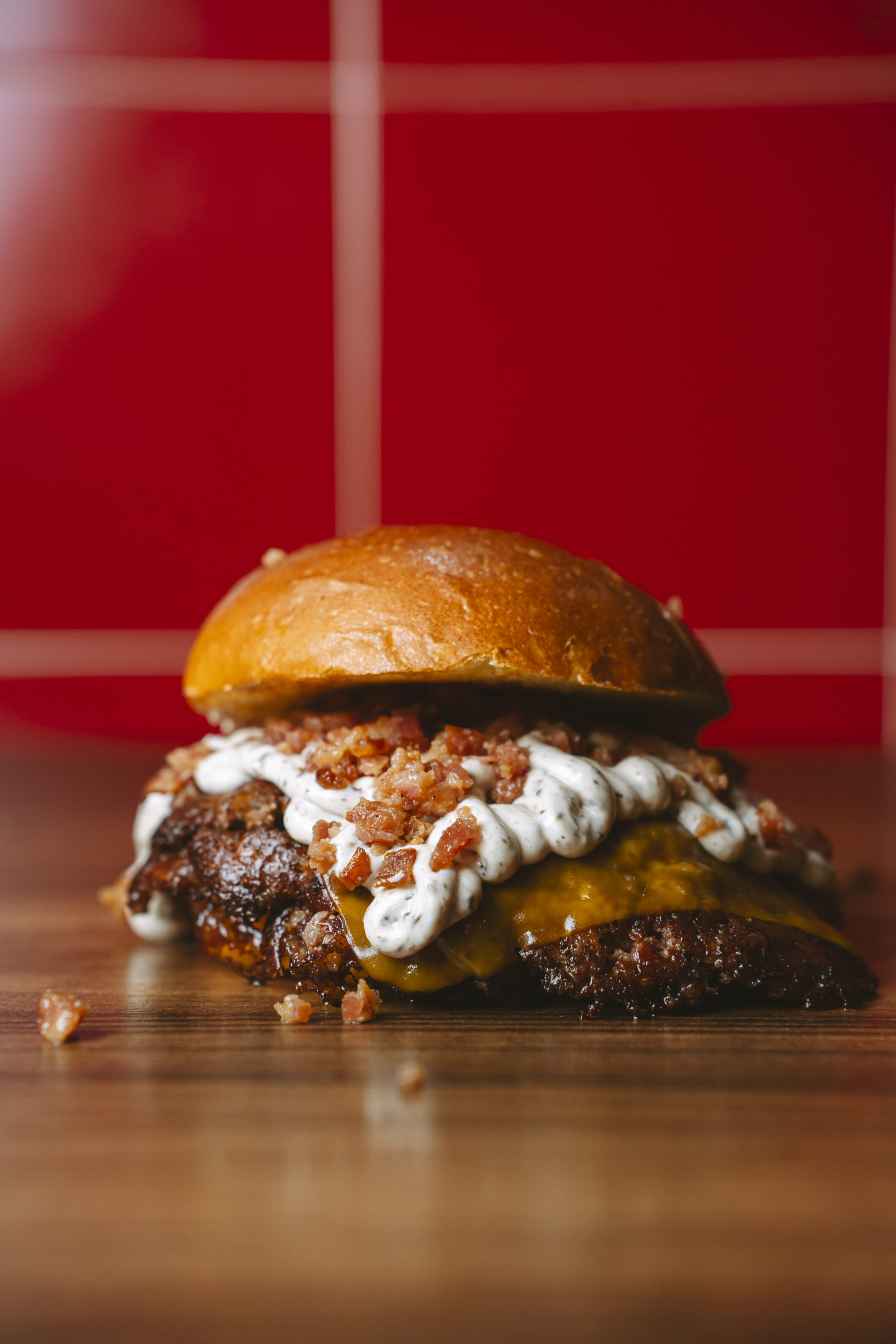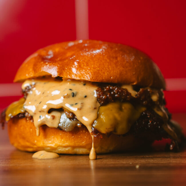 Nace sobre nuestro pan brioche y una smash de carne madurada MUERDE — la base perfecta para lo que viene: